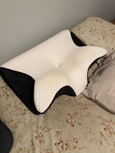 The Farinity Butterfly Memory Foam Pillow features a unique butterfly shape that cradles your neck and gently supports your head.